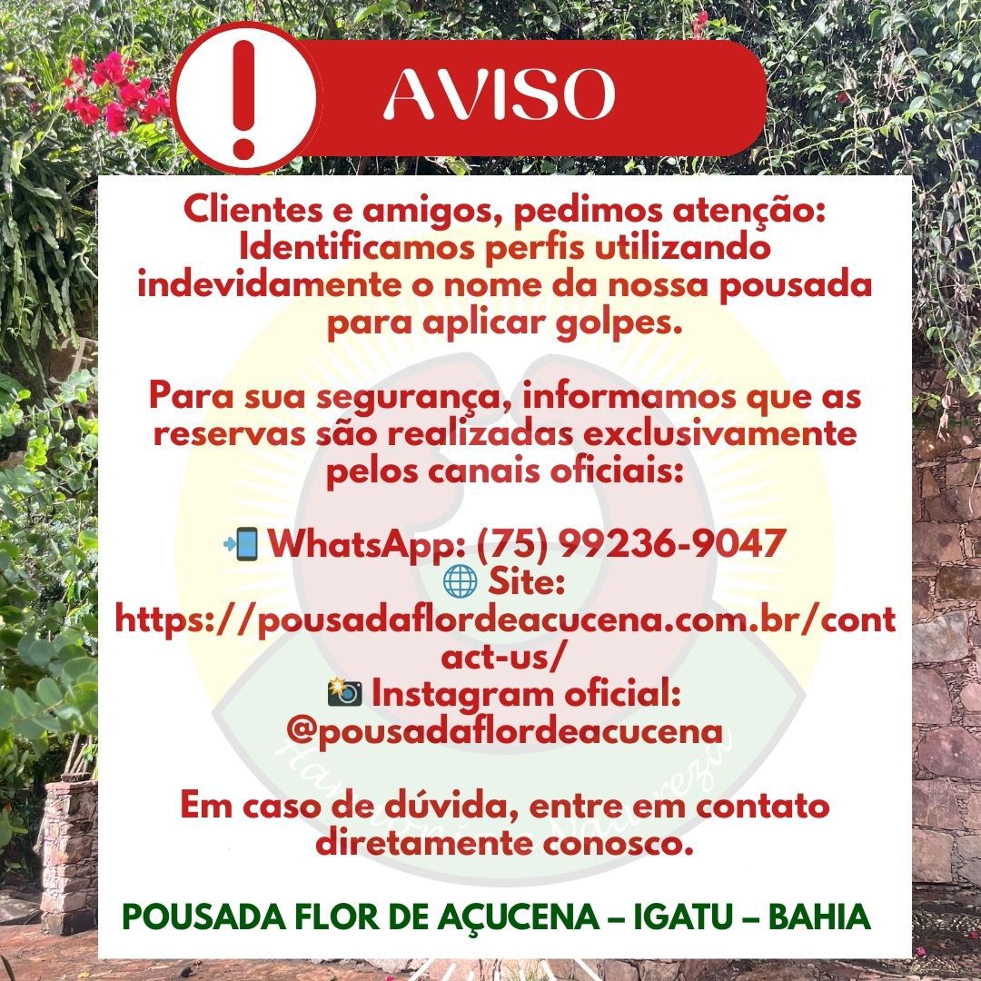 Se você procura um lugar de muita paz, a Pousada Flor de Açucena, em Igatu (Chapada Diamantina -Bahia), é a escolha perfeita. Nossos visitantes podem experimentar atividades de pleno contato com a natureza da hora em que acordam até o momento do sono relaxante.